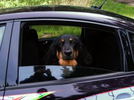 Amie's große Leidenschaft ist das Auto geworden, wo andere Hunde Probleme