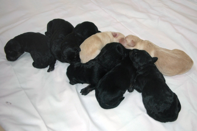 und 6 Hündinnen (2 x blond, 4 x schwarzmarken) das Leben geschenkt. Vater der