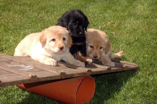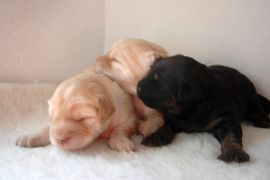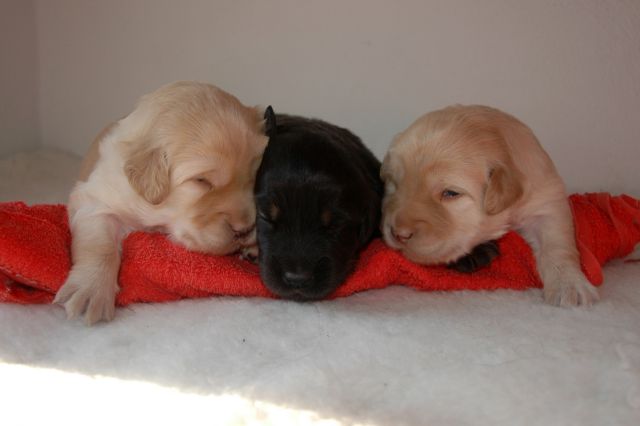 darunter einem blonden Rüden, einer schwarzmarkenen Hündin und einer blonden
